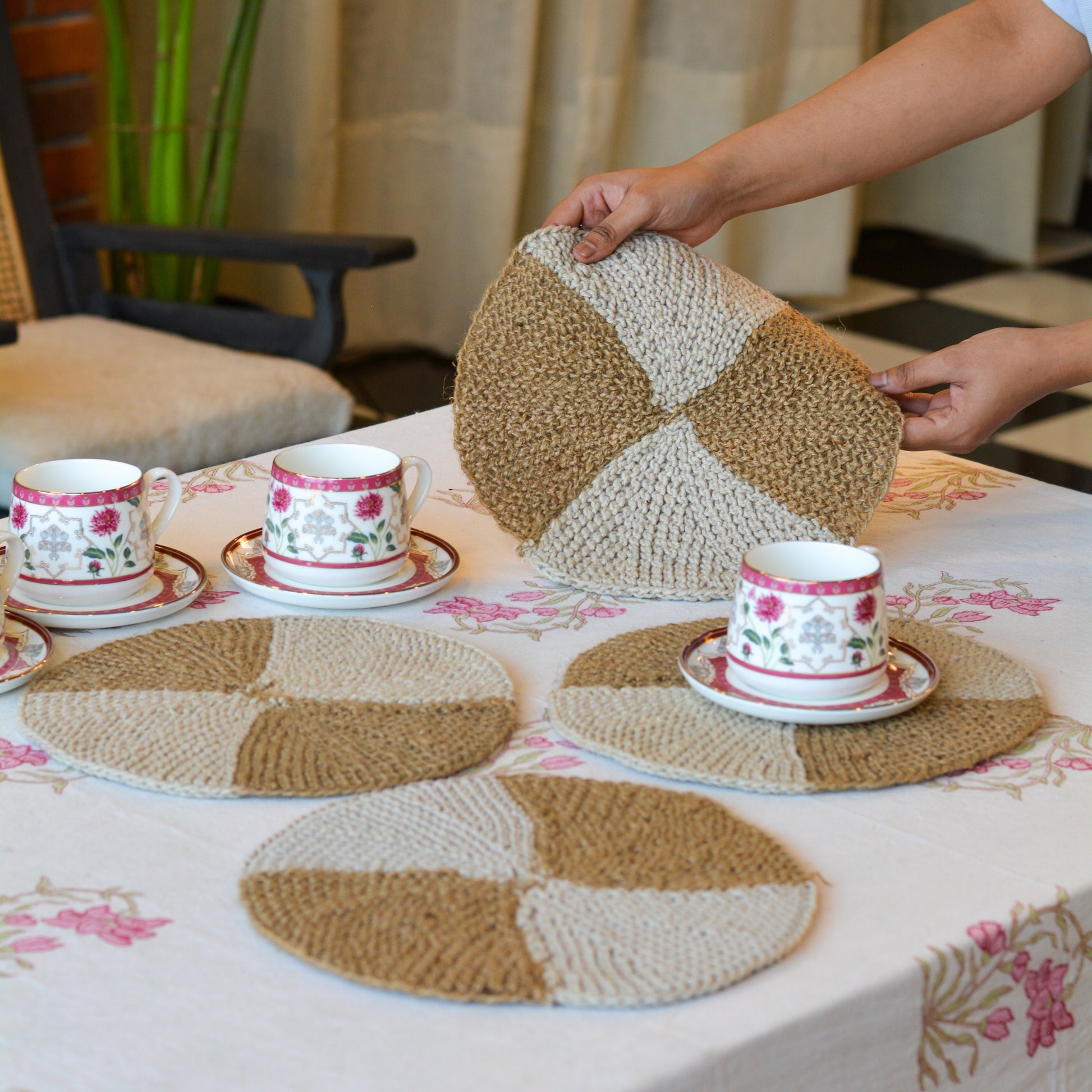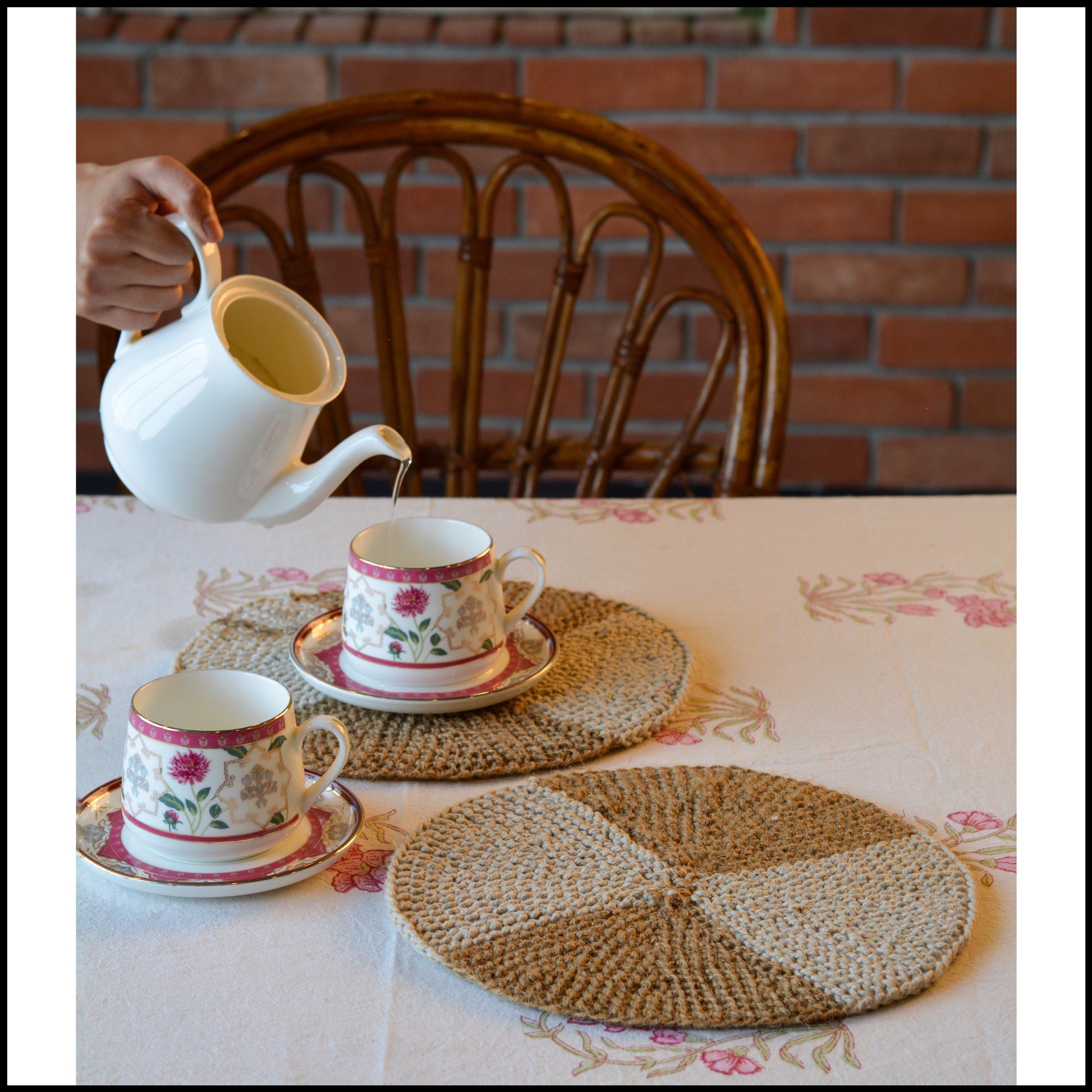 Bring home a perfect blend of sustainability and style with our Handwoven Jute & Cotton Circular Mats. Each mat is lovingly crafted by artisans using natural jute and soft cotton, offering a textured yet comfortable finish. Two versatile sizes—a 10-inch mat ideal for cups and small accents, and a 13-inch mat perfect for large dishes or decorative arrangements. Whether you’re dressing up a dining table, styling your coffee station, or curating a cozy corner, these mats add warmth, charm, and conscious design to your space. Naturally elegant, sustainably made.